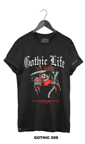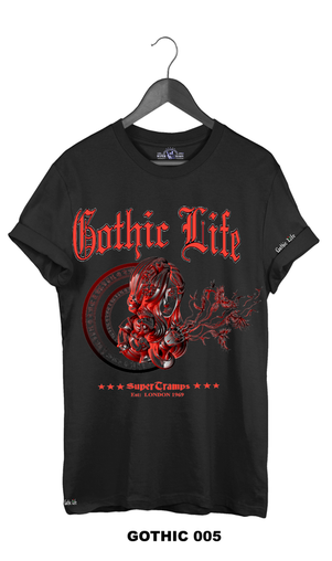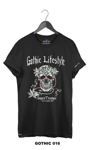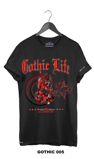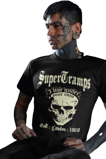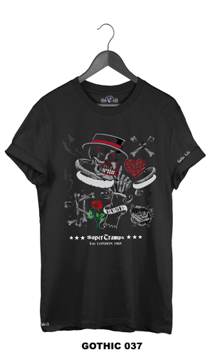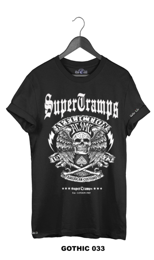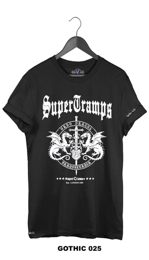 Welcome to SUPERTRAMPS GOTHIC T-SHIRT RANGE. All of the prints here are digitally printed and are soft to the touch. No 2 shirts are the same. Once 100 prints of that particular design has sold it is then discontinued and a new design is put up.